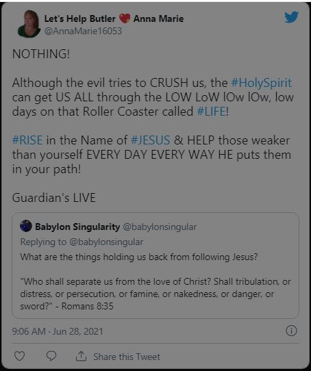 Although the evil tries to CRUSH us, the #HolySpirit can get US ALL through the LOW LoW lOw lOw, low days on that Roller Coaster called #LIFE! #RISE in the Name of #JESUS & HELP those weaker than yourself EVERY DAY EVERY WAY HE puts them in your path! Guardian’s LIVE!!