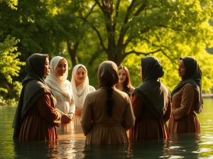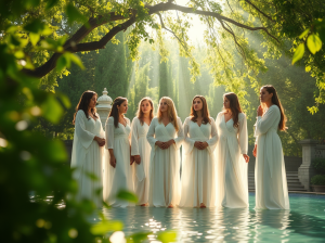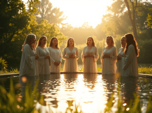 Seven Ministering women at the pool of Shiloh, preparing 144 thousand warriors for the battle of the rainbow.